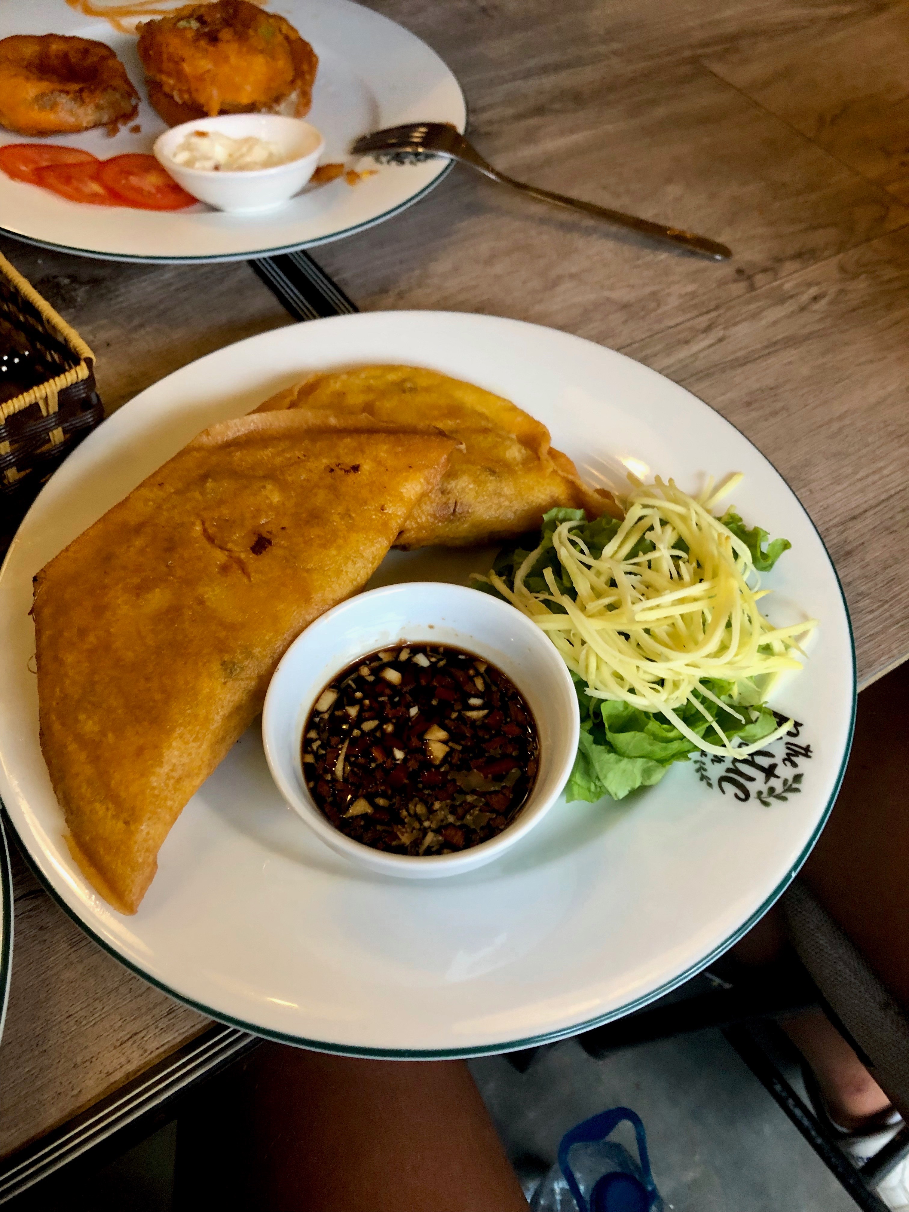 The dishes may include spring rolls, fresh fish, omelette, stir-fried vegetables (morning glory is a personal favourite of mine), various meat dishes, potatoes, sautéed cabbage, and an endless supply of rice.
